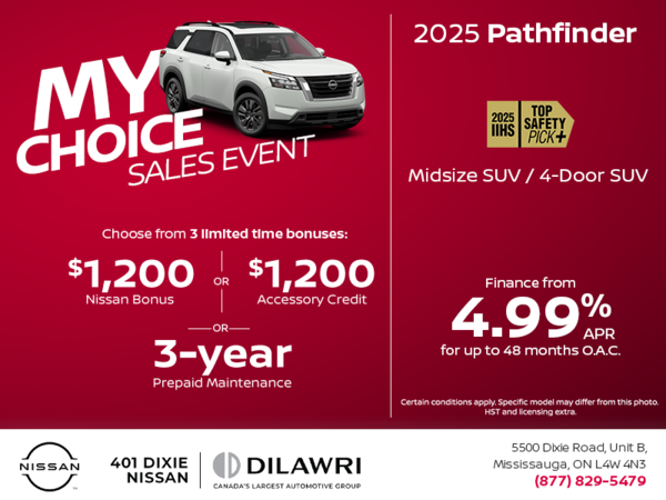 If you’re looking for value, 401 Dixie Nissan can give it to you. As a member of the Dilawri Group, we can offer you a range of special offers on all of our products and vehicles. Let the special offers at 401 Dixie Nissan help you save today. We can’t wait to show you every way we can give you more!